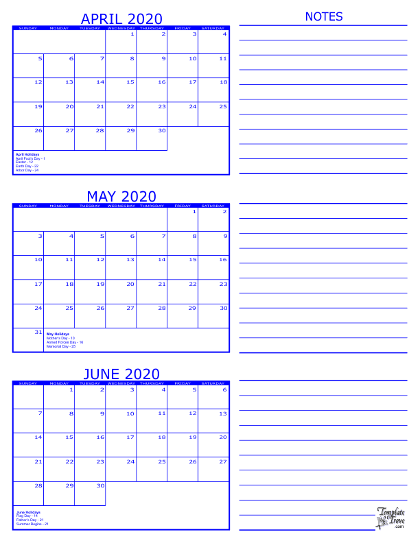 Printable 3 Month Calendar 2024 April May June. Calendars – online and print friendly – for any year and month. It's a helpful tool which you can use at work or at home. All calendars print in landscape mode (vs. portrait) on one page in easy to print PDF format. Print the calendar and mark the important dates, events, holidays, etc. for June on it. Simple, convenient, enjoy our printable calendars. The Sunday start calendar is available in PDF, Excel and Word.. Our calendars are FREE to use and are available as PDF calendar and GIF image calendar. It's also a great month for Summer fun.